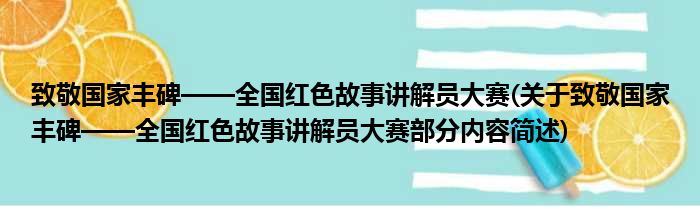致敬国家丰碑——全国红色故事讲解员大赛(关于致敬国家丰碑——全国红色故事讲解员大赛部分内容简述)
