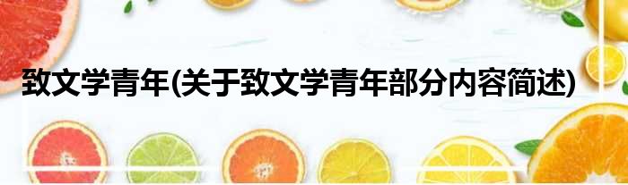 致文学青年(关于致文学青年部分内容简述)
