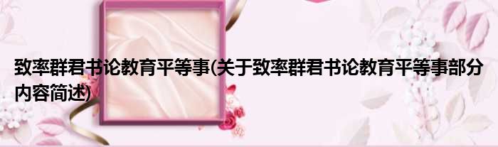 致率群君书论教育平等事(关于致率群君书论教育平等事部分内容简述)