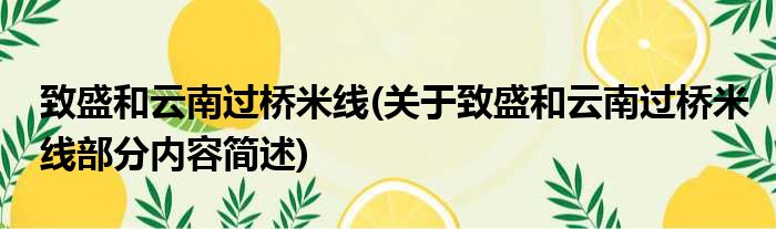 致盛和云南过桥米线(关于致盛和云南过桥米线部分内容简述)