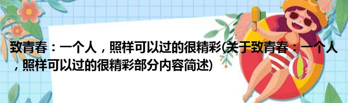 导读 大家好,今天小方来说说一篇关于致青春:一个人,照样可以过的很精彩,关于致青春:一个人,照样可以过的很精彩部分内容简述的文章,那么现