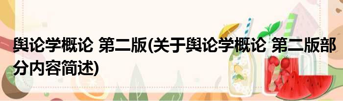 舆论学概论 第二版(关于舆论学概论 第二版部分内容简述)