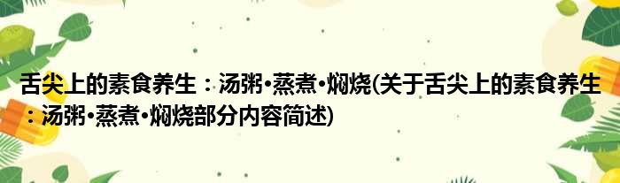 舌尖上的素食养生:汤粥·蒸煮·焖烧(关于舌尖上的素食养生:汤粥·蒸煮·焖烧部分内容简述)