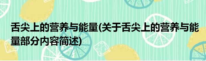 舌尖上的营养与能量(关于舌尖上的营养与能量部分内容简述)