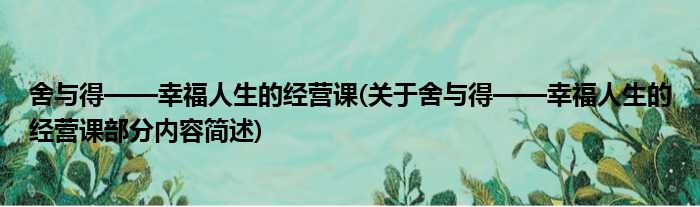 导读 大家好,今天小方来说说一篇关于舍与得——幸福人生的经营课,关于舍与得——幸福人生的经营课部分内容简述的文章,那么现在就为大家来简单