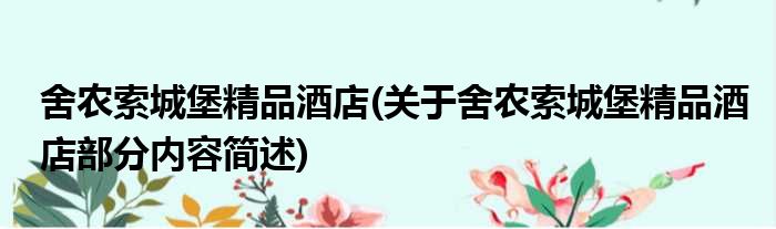 舍农索城堡精品酒店(关于舍农索城堡精品酒店部分内容简述)