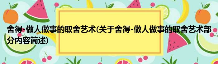 大家好,今天小方来说说一篇关于舍得-做人做事的取舍艺术,关于舍得-做人做事的取舍艺术部分内容简述的文章,那么现在就为大家来简单介绍下,希望对各位小伙伴们有所帮助。