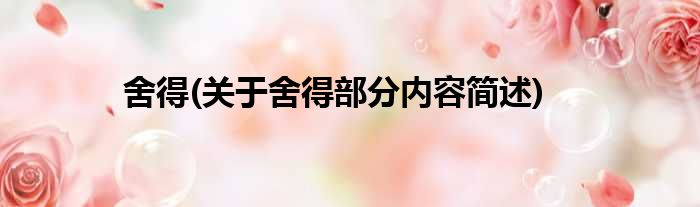 导读 大家好,今天小方来说说一篇关于舍得,关于舍得部分内容简述的文章,那么现在就为大家来简单介绍下,希望对各位小伙伴们有所帮助。