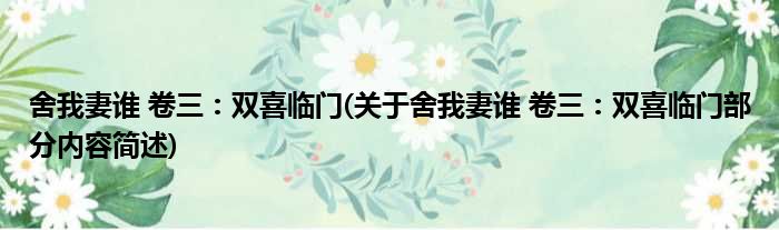 导读 大家好,今天小方来说说一篇关于舍我妻谁 卷三:双喜临门,关于舍我妻谁 卷三:双喜临门部分内容简述的文章,那么现在就为大家来简单介绍
