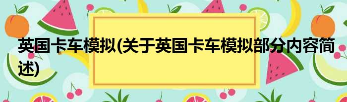 英国卡车模拟(关于英国卡车模拟部分内容简述)