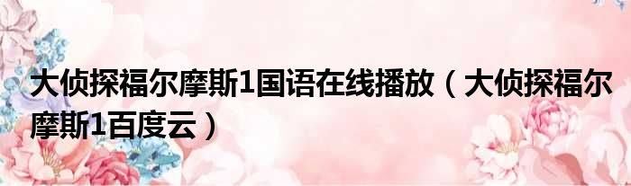 大侦探福尔摩斯1国语在线播放(大侦探福尔摩斯1百度云)