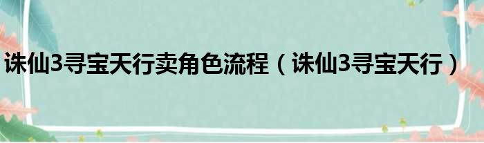 诛仙3寻宝天行卖角色流程(诛仙3寻宝天行)