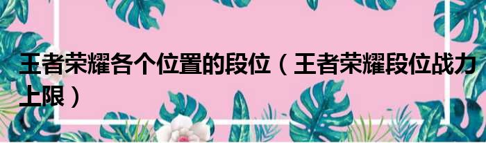 大家好,小活来为大家解答以上的问题。王者荣耀各个位置的段位,王者荣耀段位战力上限这个很多人还不知道,现在让我们一起来看看吧!