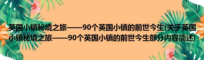 英国小镇秘境之旅——90个英国小镇的前世今生(关于英国小镇秘境之旅——90个英国小镇的前世今生部分内容简述)