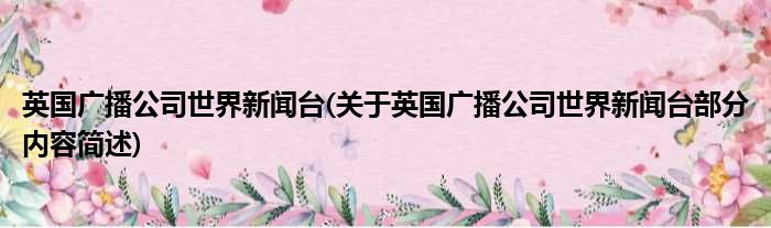 导读 大家好,今天小方来说说一篇关于英国广播公司世界新闻台,关于英国广播公司世界新闻台部分内容简述的文章,那么现在就为大家来简单介绍下,