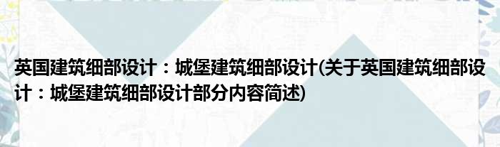 导读 大家好,今天小方来说说一篇关于英国建筑细部设计:城堡建筑细部设计,关于英国建筑细部设计:城堡建筑细部设计部分内容简述的文章,那么现