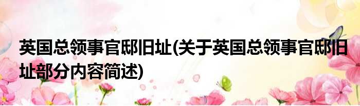 导读 大家好,今天小方来说说一篇关于英国总领事官邸旧址,关于英国总领事官邸旧址部分内容简述的文章,那么现在就为大家来简单介绍下,希望对各