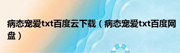 病态宠爱txt百度云下载(病态宠爱txt百度网盘)