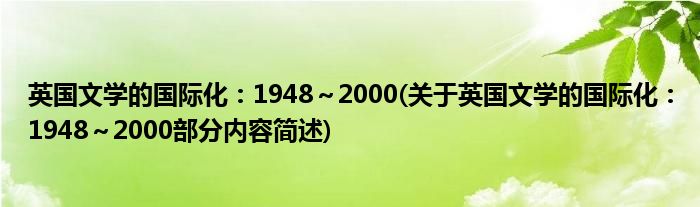 英国文学的国际化:1948~2000(关于英国文学的国际化:1948~2000部分内容简述)