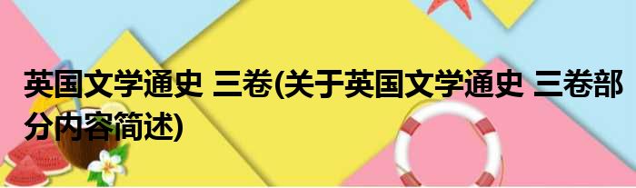 英国文学通史 三卷(关于英国文学通史 三卷部分内容简述)