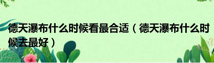 德天瀑布什么时候看最合适(德天瀑布什么时候去最好)