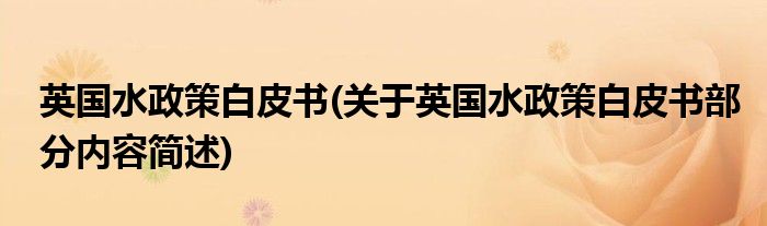 导读 大家好,今天小方来说说一篇关于英国水政策白皮书,关于英国水政策白皮书部分内容简述的文章,那么现在就为大家来简单介绍下,希望对各位小