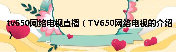 大家好,小活来为大家解答以上的问题。tv650网络电视直播,TV650网络电视的介绍这个很多人还不知道,现在让我们一起来看看吧!