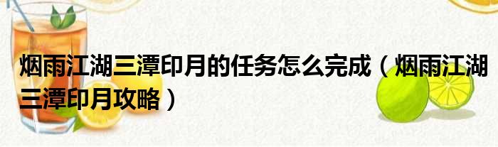 烟雨江湖三潭印月的任务怎么完成(烟雨江湖三潭印月攻略)