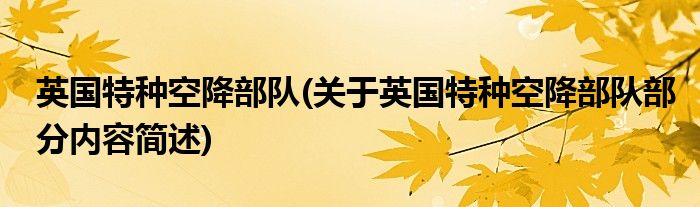 英国特种空降部队(关于英国特种空降部队部分内容简述)