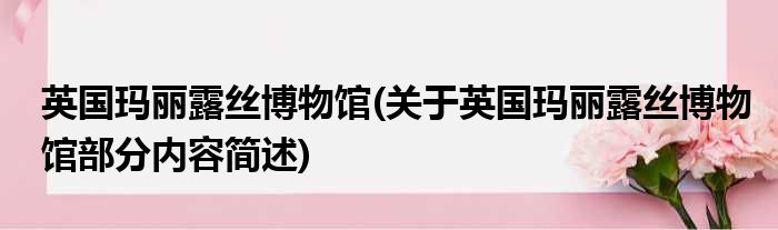 导读 大家好,今天小方来说说一篇关于英国玛丽露丝博物馆,关于英国玛丽露丝博物馆部分内容简述的文章,那么现在就为大家来简单介绍下,希望对各