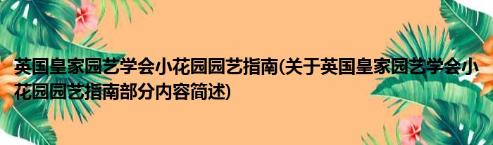 英国皇家园艺学会小花园园艺指南(关于英国皇家园艺学会小花园园艺指南部分内容简述)