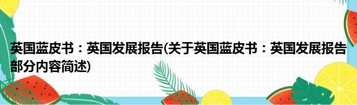 导读 大家好,今天小方来说说一篇关于英国蓝皮书:英国发展报告,关于英国蓝皮书:英国发展报告部分内容简述的文章,那么现在就为大家来简单介绍