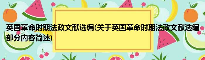 英国革命时期法政文献选编(关于英国革命时期法政文献选编部分内容简述)