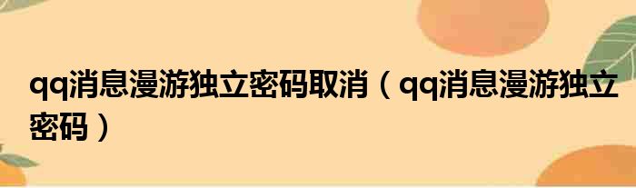 qq消息漫游独立密码取消(qq消息漫游独立密码)