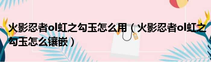 火影忍者ol虹之勾玉怎么用(火影忍者ol虹之勾玉怎么镶嵌)