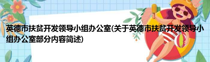 导读 大家好,今天小方来说说一篇关于英德市扶贫开发领导小组办公室,关于英德市扶贫开发领导小组办公室部分内容简述的文章,那么现在就为大家来