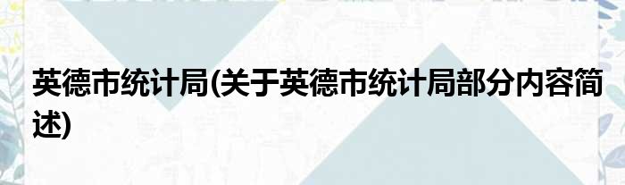 英德市统计局(关于英德市统计局部分内容简述)