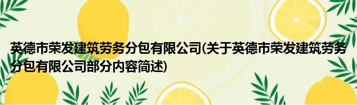 英德市荣发建筑劳务分包有限公司(关于英德市荣发建筑劳务分包有限公司部分内容简述)