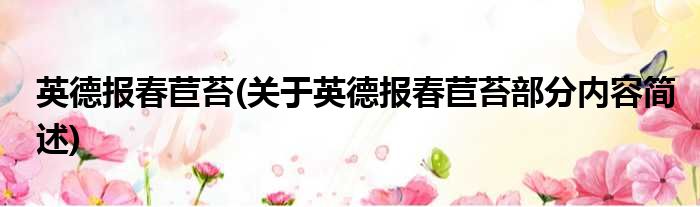 英德报春苣苔(关于英德报春苣苔部分内容简述)