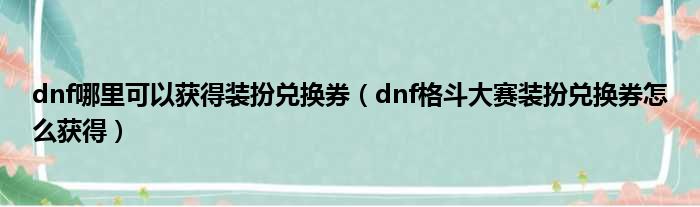 dnf哪里可以获得装扮兑换券(dnf格斗大赛装扮兑换券怎么获得)