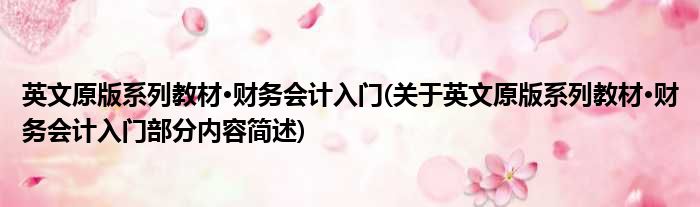 导读 大家好,今天小方来说说一篇关于英文原版系列教材·财务会计入门,关于英文原版系列教材·财务会计入门部分内容简述的文章,那么现在就为大