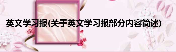 导读 大家好,今天小方来说说一篇关于英文学习报,关于英文学习报部分内容简述的文章,那么现在就为大家来简单介绍下,希望对各位小伙伴们有所帮