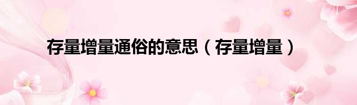导读 大家好,小活来为大家解答以上的问题。存量增量通俗的意思,存量增量这个很多人还不知道,现在让我们一起来看看吧!1、其实就是指用现成的资