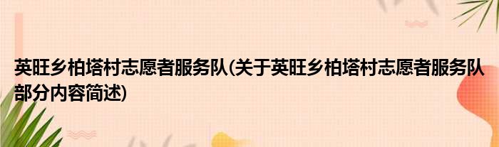 英旺乡柏塔村志愿者服务队(关于英旺乡柏塔村志愿者服务队部分内容简述)