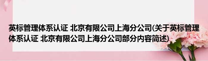 英标管理体系认证 北京有限公司上海分公司(关于英标管理体系认证 北京有限公司上海分公司部分内容简述)