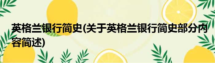 英格兰银行简史(关于英格兰银行简史部分内容简述)