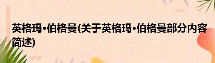 英格玛·伯格曼(关于英格玛·伯格曼部分内容简述)