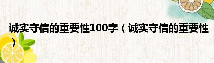 大家好,小活来为大家解答以上的问题。诚实守信的重要性100字,诚实守信的重要性这个很多人还不知道,现在让我们一起来看看吧!