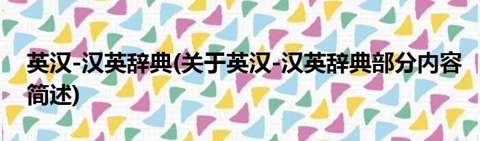 英汉-汉英辞典(关于英汉-汉英辞典部分内容简述)