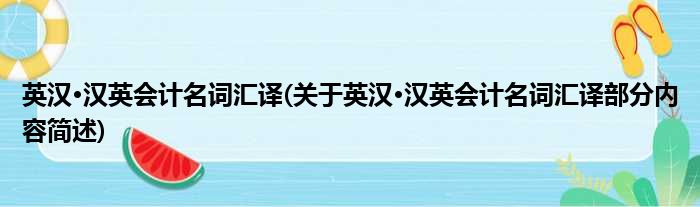 英汉·汉英会计名词汇译(关于英汉·汉英会计名词汇译部分内容简述)